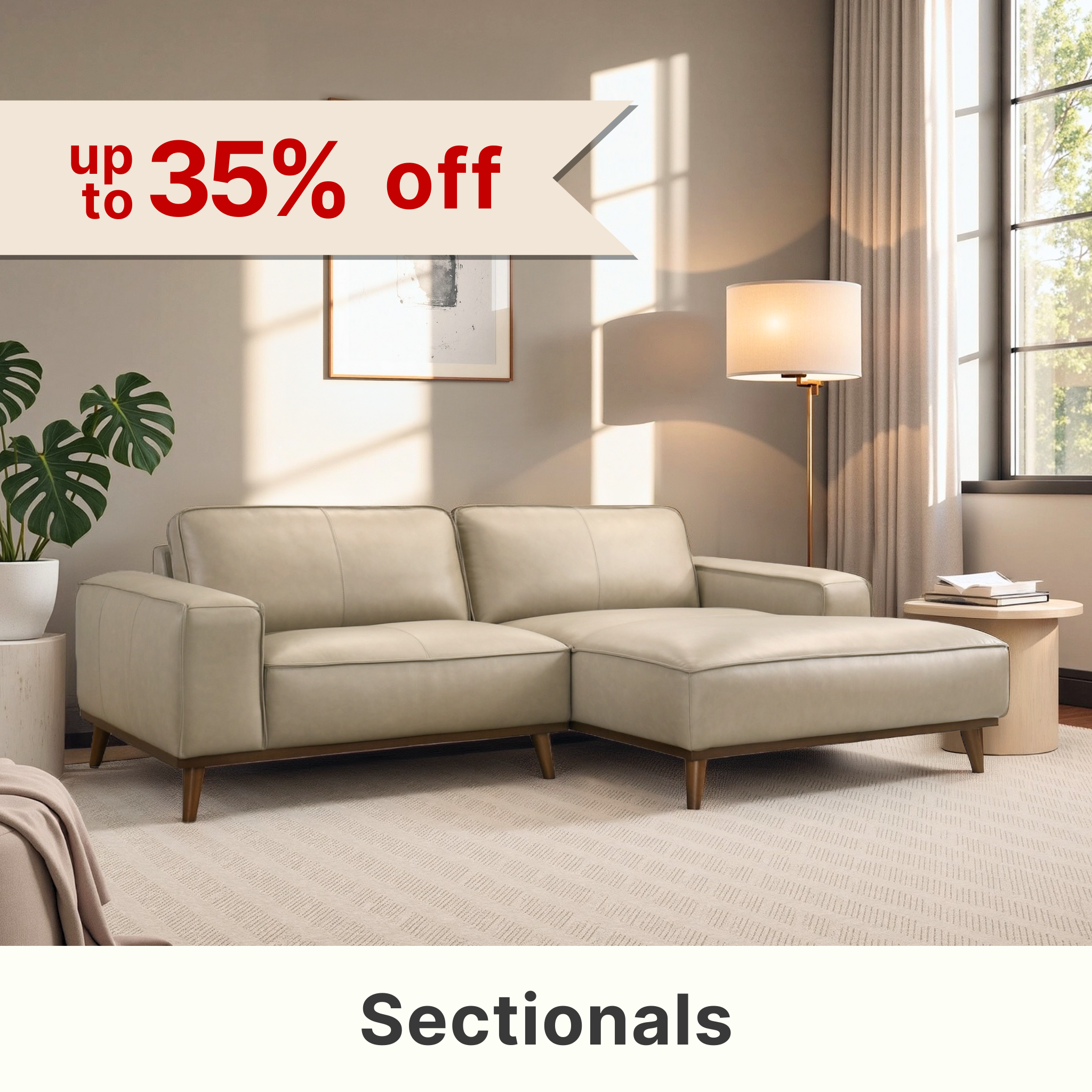 Living Room: A sectional sofa and sculptural lamp = comfort and style. Add a walnut coffee table.
