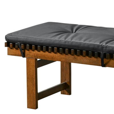 Enhance your space with our Mid-Century Modern Solid Wood Dining Bench, featuring stylish vegan leather upholstery. Made from sturdy rubber wood with a sleek walnut finish, this bench brings a chic, sophisticated vibe. The comfortable, stain-resistant vegan leather cushion is perfect for homes with pets. Seating two, it’s ideal for dining rooms, living rooms, bedrooms, or entryways and can hold up to 400 lbs.