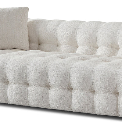 Marceille comfortable living room couch will provide a fresh and pleasing look to your space and will be the center of attention thanks to its tufted chesterfield design. This designer style french boucle sofas creates an inviting space for your guests or family entertainment activities. Combining top-quality craftmanship and high-density foam, this set will provide you with great comfort and undoubtedly become the centerpiece of your aparment , living room, den, urban loft, condo. All pieces are made of top quality fabric and can be cleaned with a microfiber cloth. Removable legs allow for simple delivery for tight spaces. Easy assembly, everyday use comfortable, affordable and durable quality boucle fabric couches.
